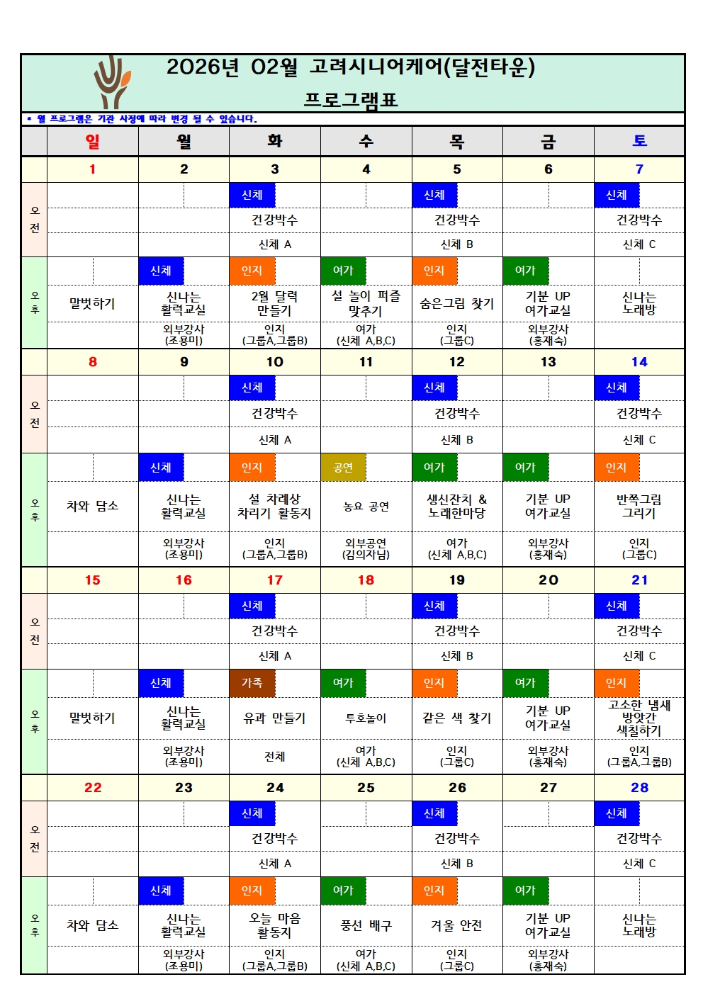 26년 02월 프로그램 일정표